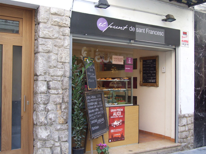 Este establecimiento, situado en una de las zonas más comerciales del centro de Sitges, está cuidadamente decorado en tonos principalmente marrones y blancos. El ambiente es muy acogedor, de manera que El Punt de Sant Francesc se convierte en un lugar idóneo para relajarse tomando un café, leer la prensa o charlar con los amigos.